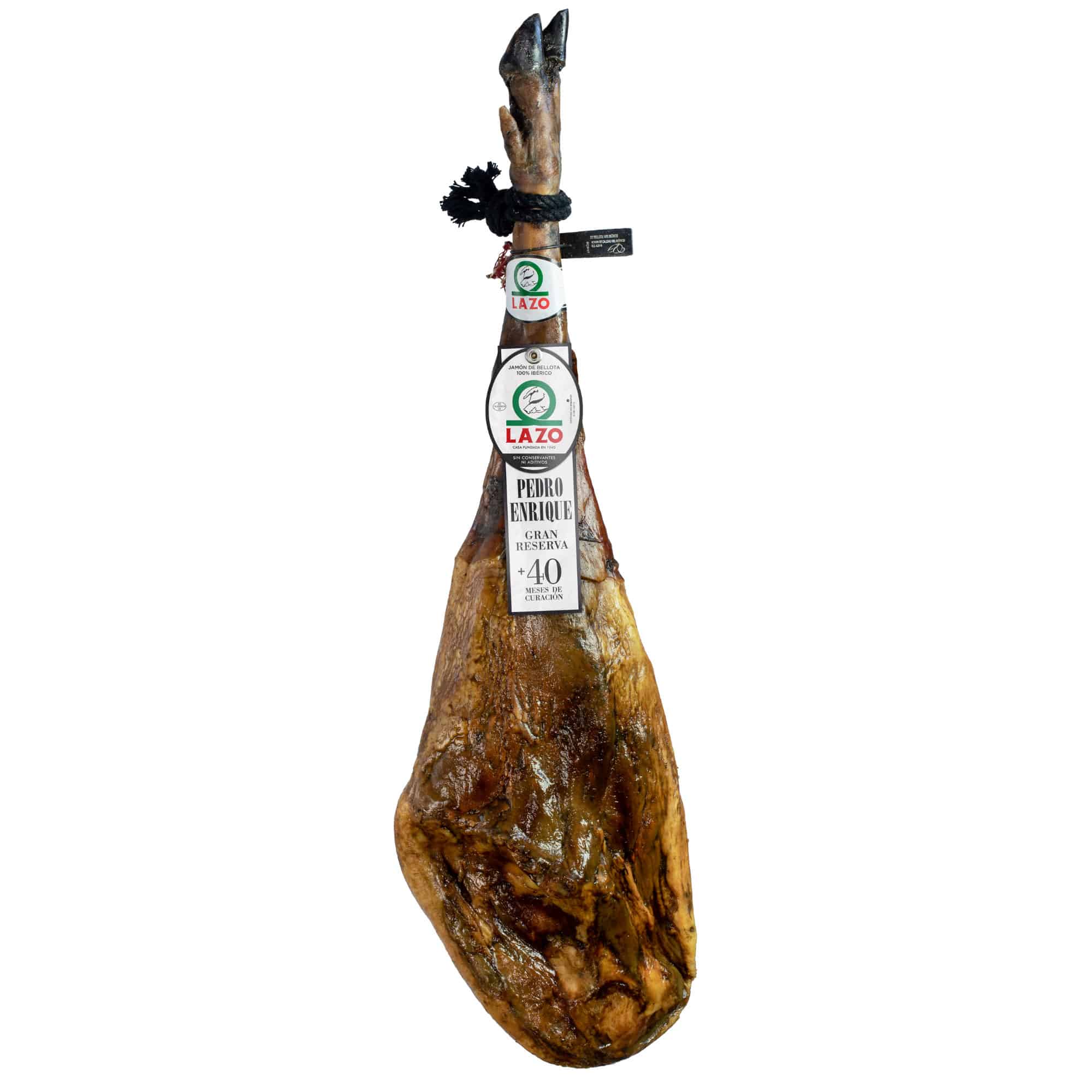 Acorn-fed 100% Iberian Acorn-fed Ham. Lazo 100% natural brand. (Gran Reserva “Pedro Enrique” more than 40 months of curing).