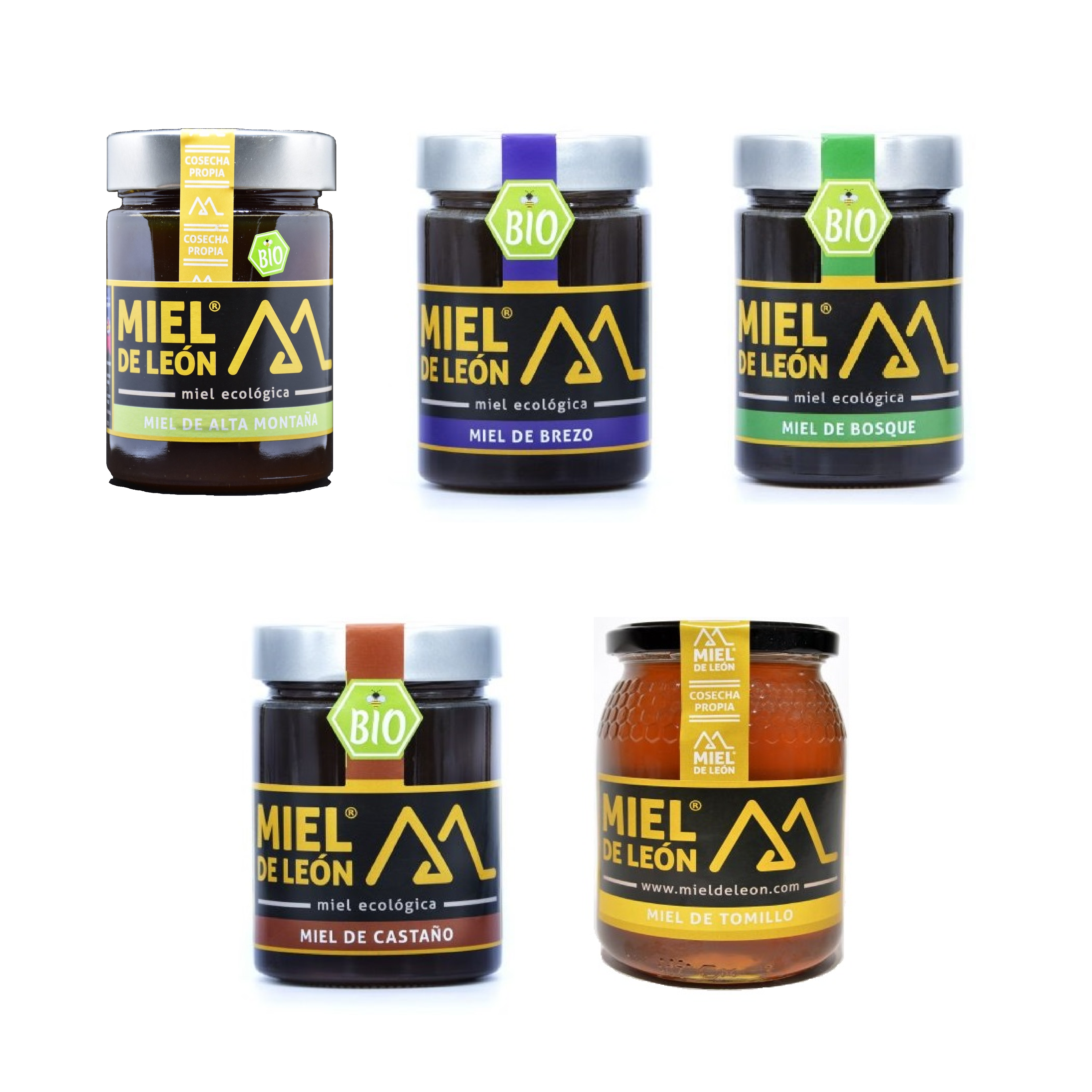 COMBINATION OF 5 DIFFERENT ORGANIC HONEYS. In 450 g packs.