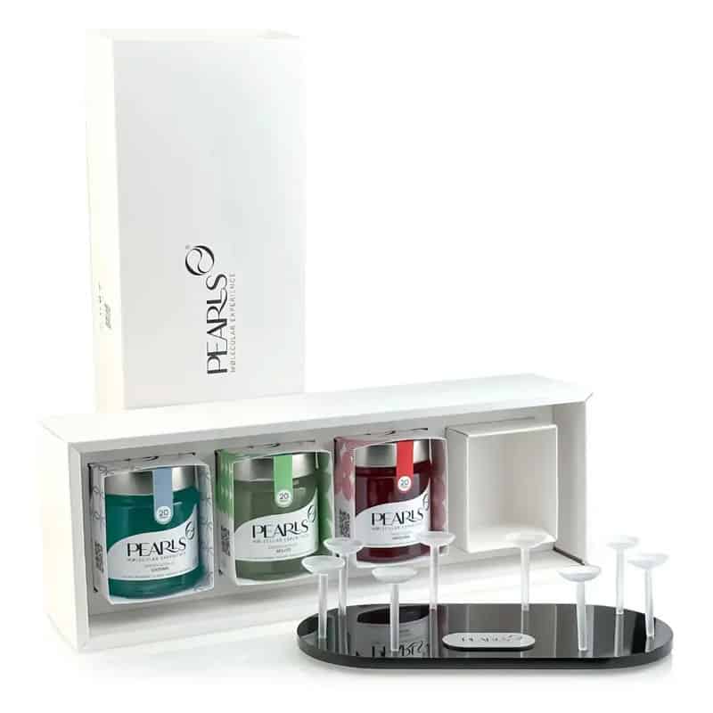 Pack of 60 molecular cocktail pearls with gift presentation tray.