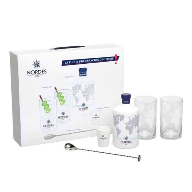 Enjoy the Nordés gin & tonic gift box, perfect as a present, to treat yourself and enjoy. Includes a Nordés 70cl bottle, 2 Nordés glasses, a ceramic measuring cup and a stirring spoon.
