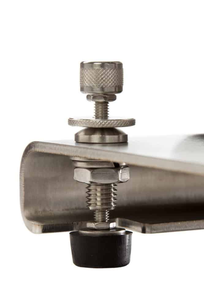The bushing is fixed to a stainless steel support that is strongly anchored by means of screws to the ham holder base, which is also made of top quality stainless steel. It is very thick and heavy, which, together with its non-slip rubber feet, gives it great stability and safety when cutting. One of the legs of the ham holder is height adjustable, which makes it easier for the tool to sit on uneven surfaces.