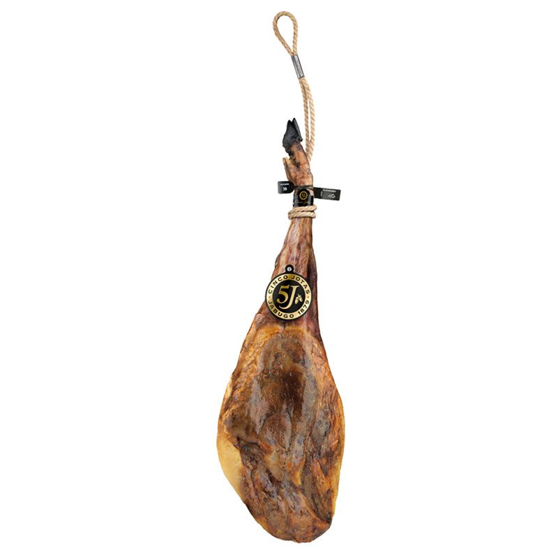 Cinco Jotas 100% Iberian Acorn-fed Acorn-fed 100% Iberian Acorn-fed Ham 7-8 kg. Whole piece of 7 to 8 kg. A unique ham with an extraordinary flavour.