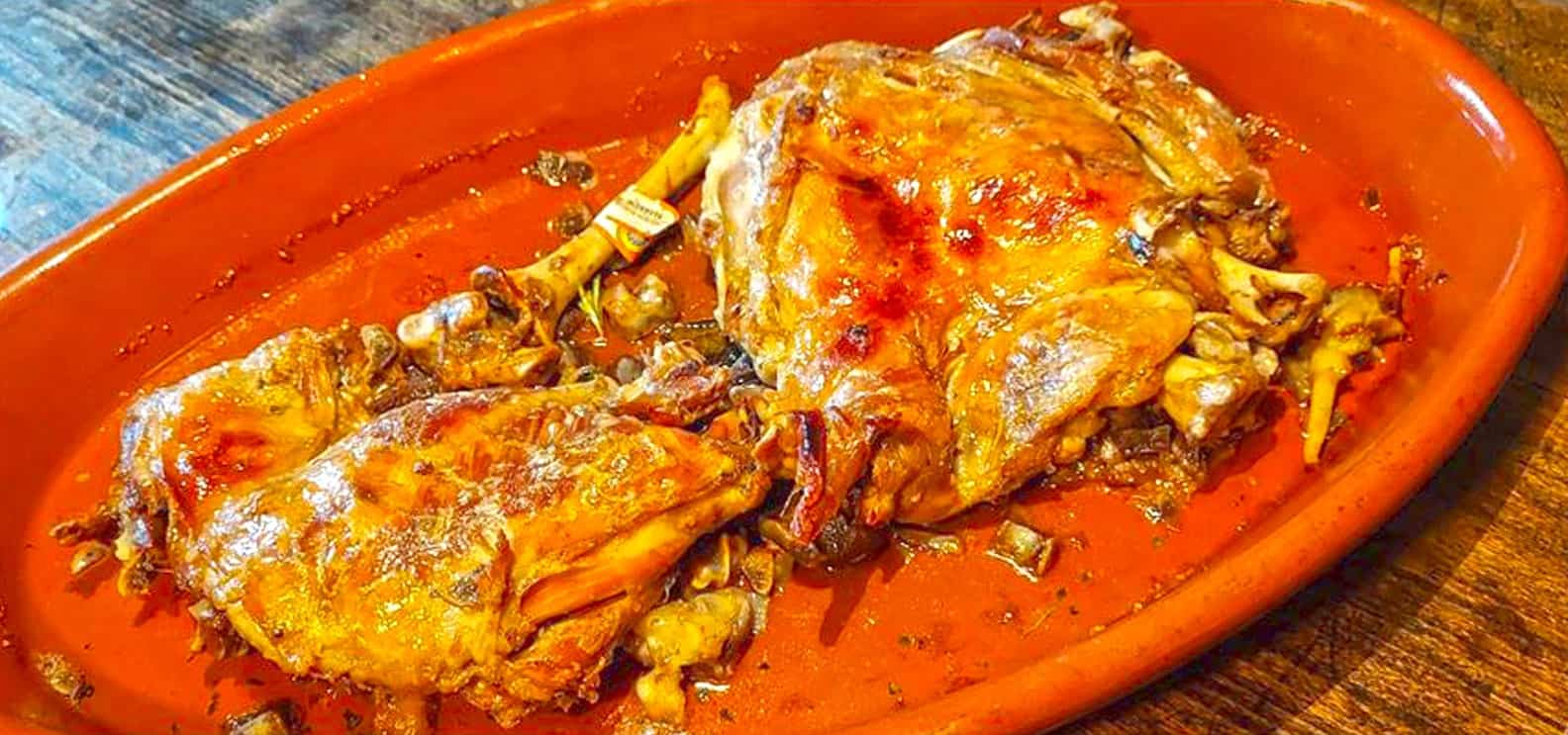 Half suckling lamb confit in duck fat, ready to heat and serve. Served in a tin presented in a case.