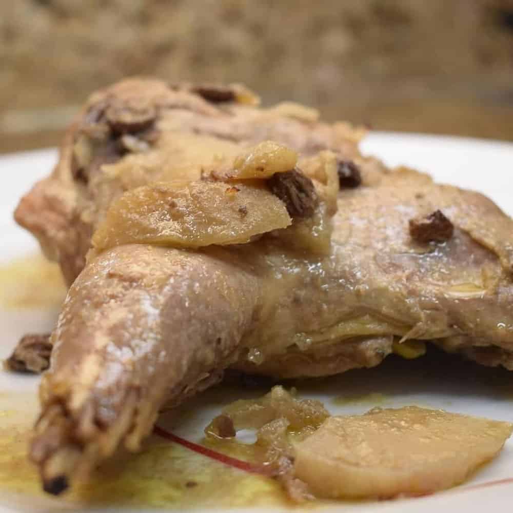 LOW TEMPERATURE PHEASANT WITH APPLES AND SULTANAS