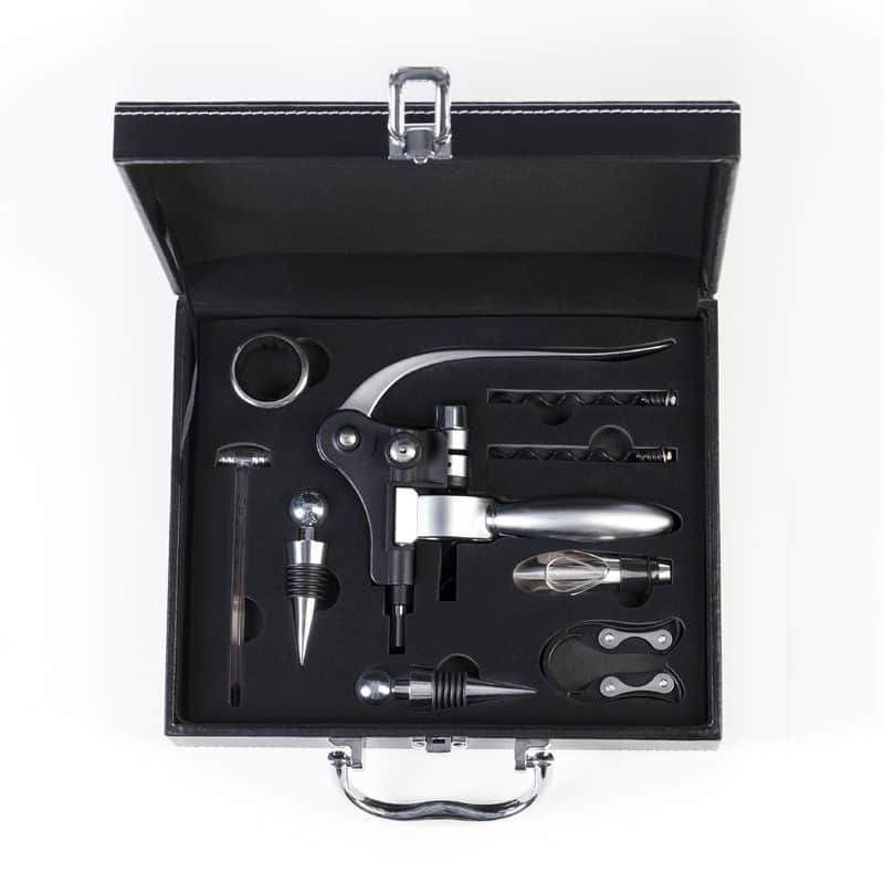 Wine accessories set in leather case