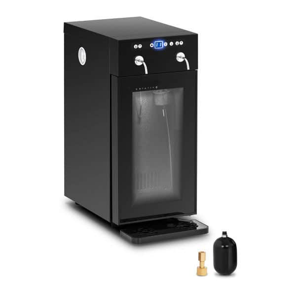 The bottle cooler offers adequate storage for two bottles of wine. The temperature can be precisely adjusted in a range between 7 and 18 °C, which is ideal for white, rosé and young red wines, and can be monitored on the LED display at a glance. The built-in wine dispensers will ensure a clean and convenient removal of the wines, without the need to open the cabinet. The dispensing quantity can be precisely adjusted between 1 and 99 ml. A refillable gas cartridge, which is necessary for easy operation, is not included in the delivery. Another advantage of the fume cupboard is that the beverages retain their taste and quality for up to 30 days, even when opened. The most attractive feature is the eye-catching lighting, thanks to which the wines can be presented in an ingenious and elegant way.